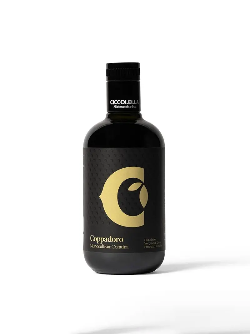 Strong, appetizing and rich on the palate. Coppadoro is the monovarietal extra virgin olive oil obtained only from one olive variety called Coratina. Coppadoro is a scents explosion of freshly cut grass and borage with notes of almond and artichoke.